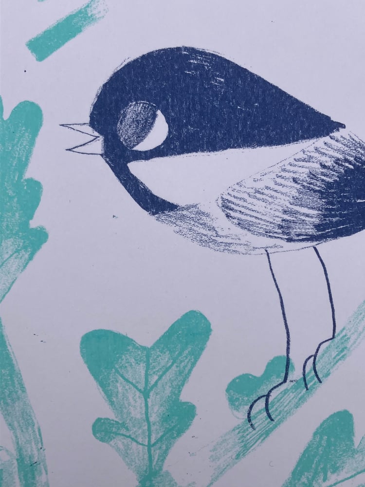This is a handmade/drawn Riso print. Things can get a bit squiffy with a Riso, the odd blemish, smudge, fingerprint or misalignment are all part of the charm.