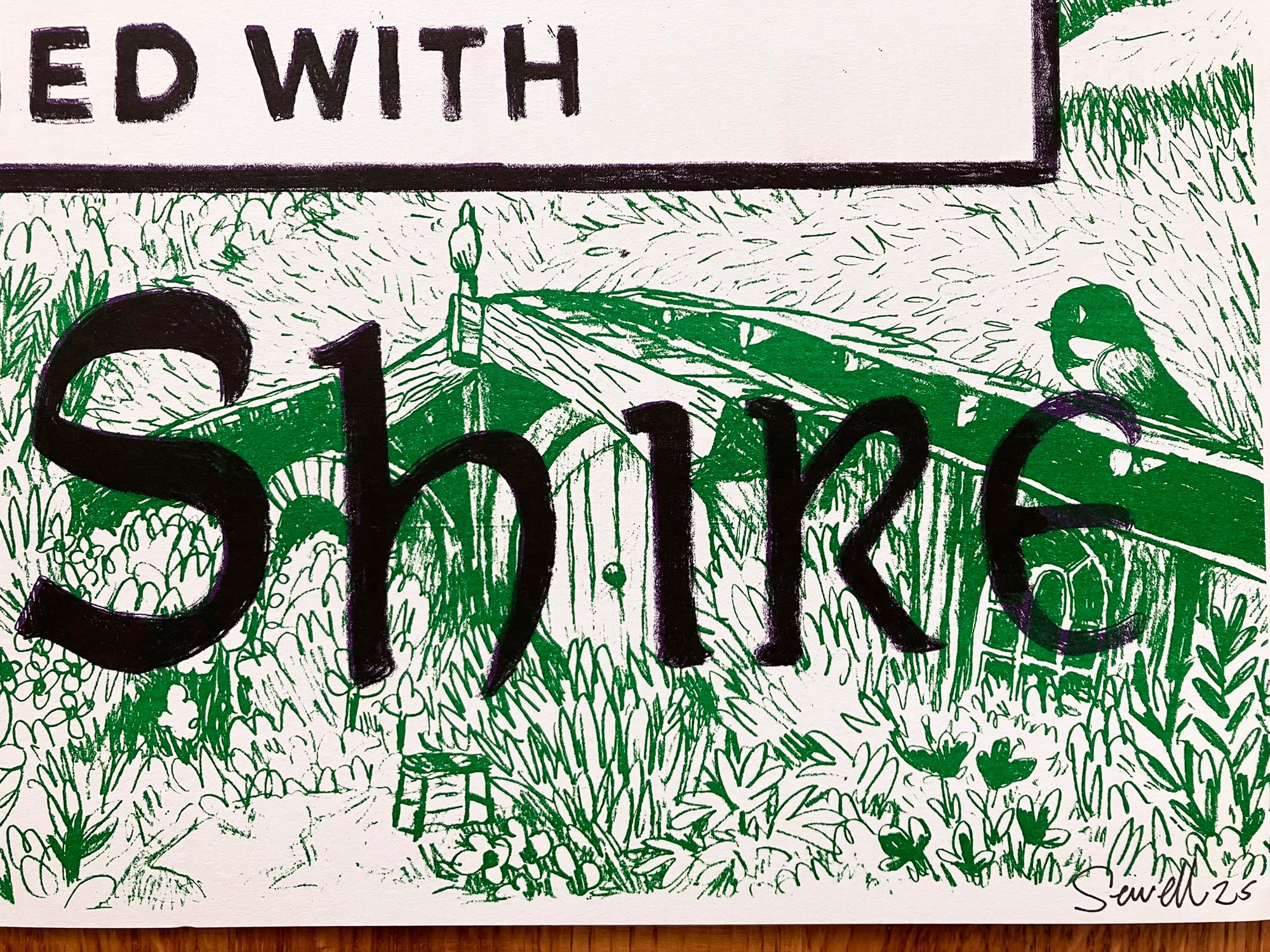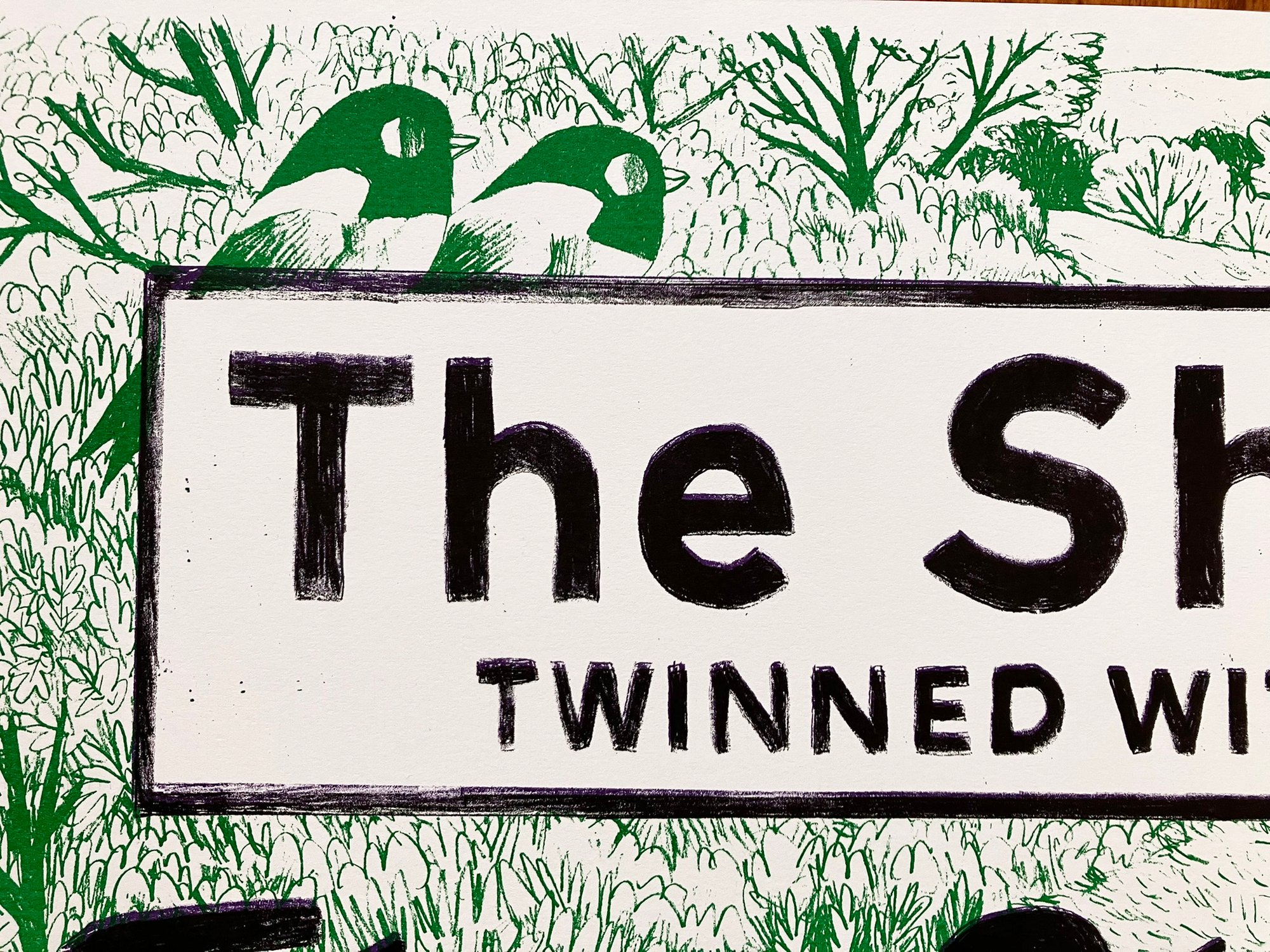 This is a handmade/drawn Riso print. Things can get a bit squiffy with a Riso, the odd blemish, smudge, fingerprint or misalignment are all part of the charm.