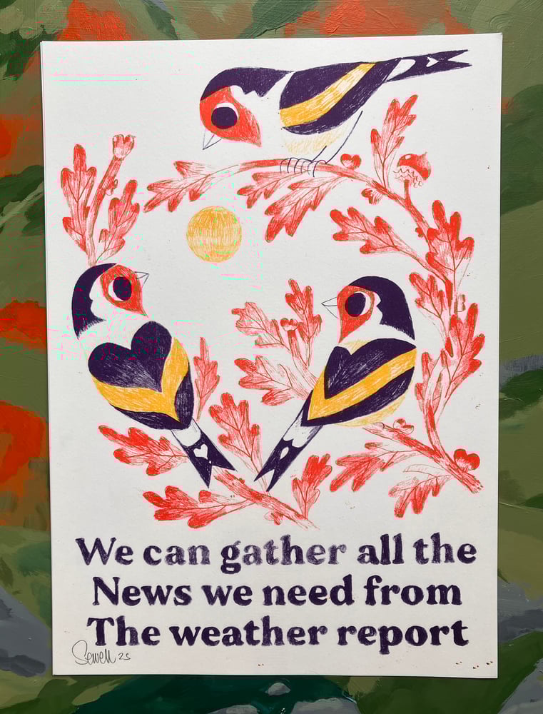 This is a handmade/drawn Riso print. Things can get a bit squiffy with a Riso, the odd blemish, smudge, fingerprint or misalignment are all part of the charm.
